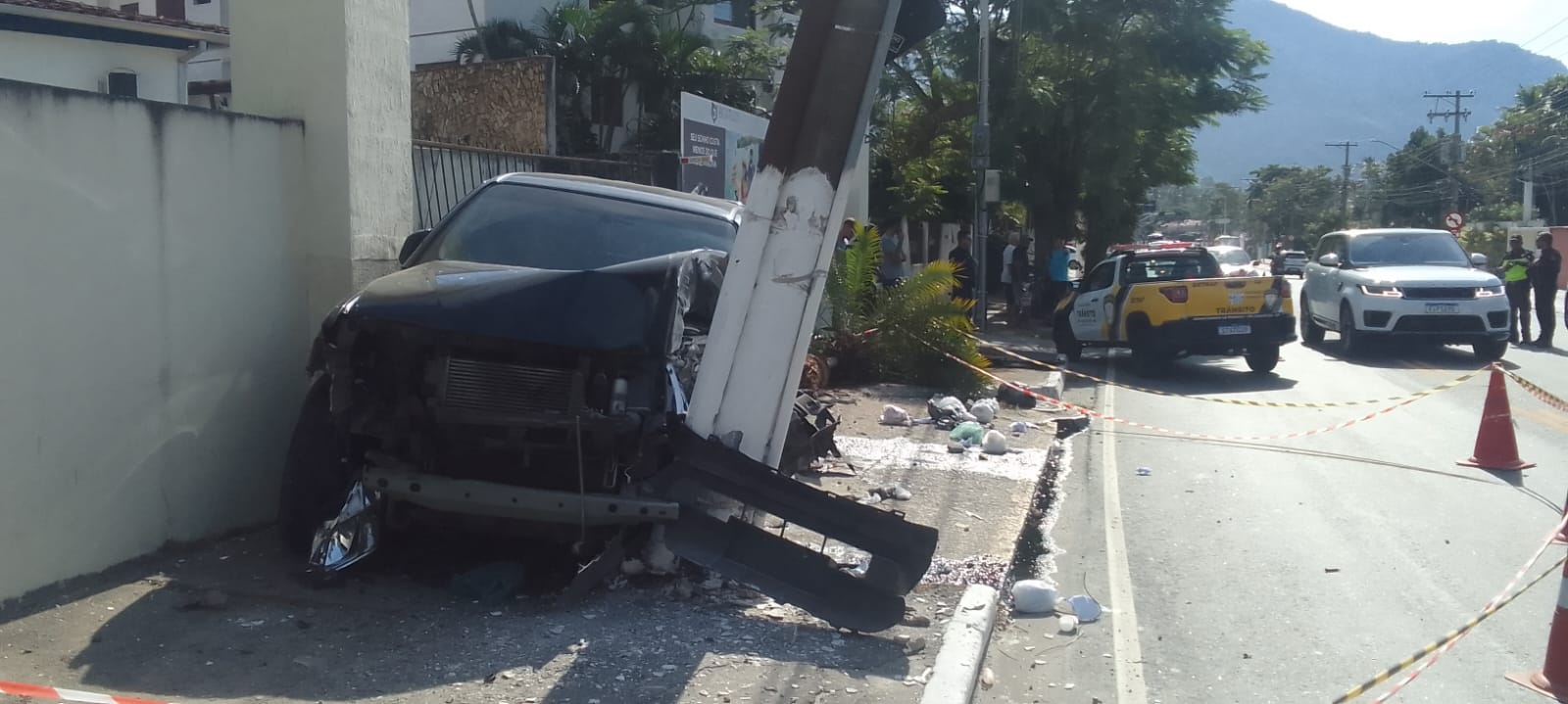 Um motorista de uma caminhonete bateu veículo contra um postena tarde desta quinta-feira (8), após perder o controle do veículo na SP-55 no trecho do bairro Portal da Cruz em São Sebastião.