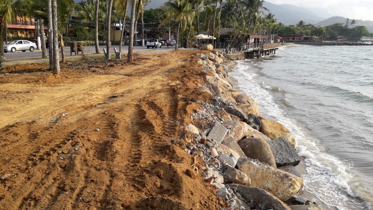 A Prefeitura de Ilhabela finalizou a obra emergencial de enrocamento em parte da orla do Perequê que sofreu com o avanço da maré, derrubando coqueiros e destruindo decks de quiosques. Agora, o trabalho será de refazer a parte de paisagismo no local.