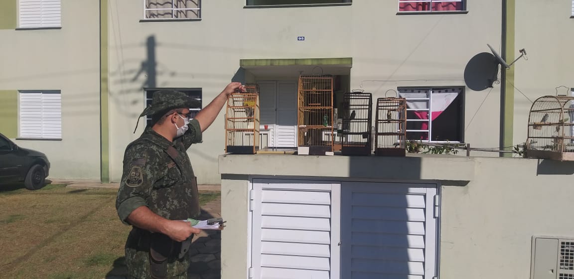 Segundo informou, a 3ª Companhia de Polícia Militar Ambiental Terrestre do 3° Batalhão de Policiamento Ambiental do Estado de São Paulo, durante o patrulhamento ostensivo preventivo visualizaram duas residências com gaiolas penduradas no quintal.